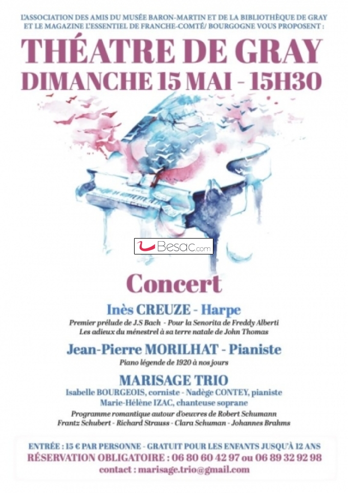 Musique, SoiréesL'association des Amis du Musée Baron-Martin et de la bibliothèque de Gray vous proposent ce grand concert.